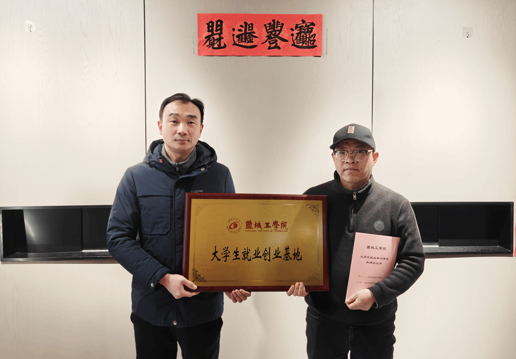 学院还与企业签署了共建大学生就业创业实习基地协议,并向企业授予了“盐城工学院大学生就业创业基地”铜牌。