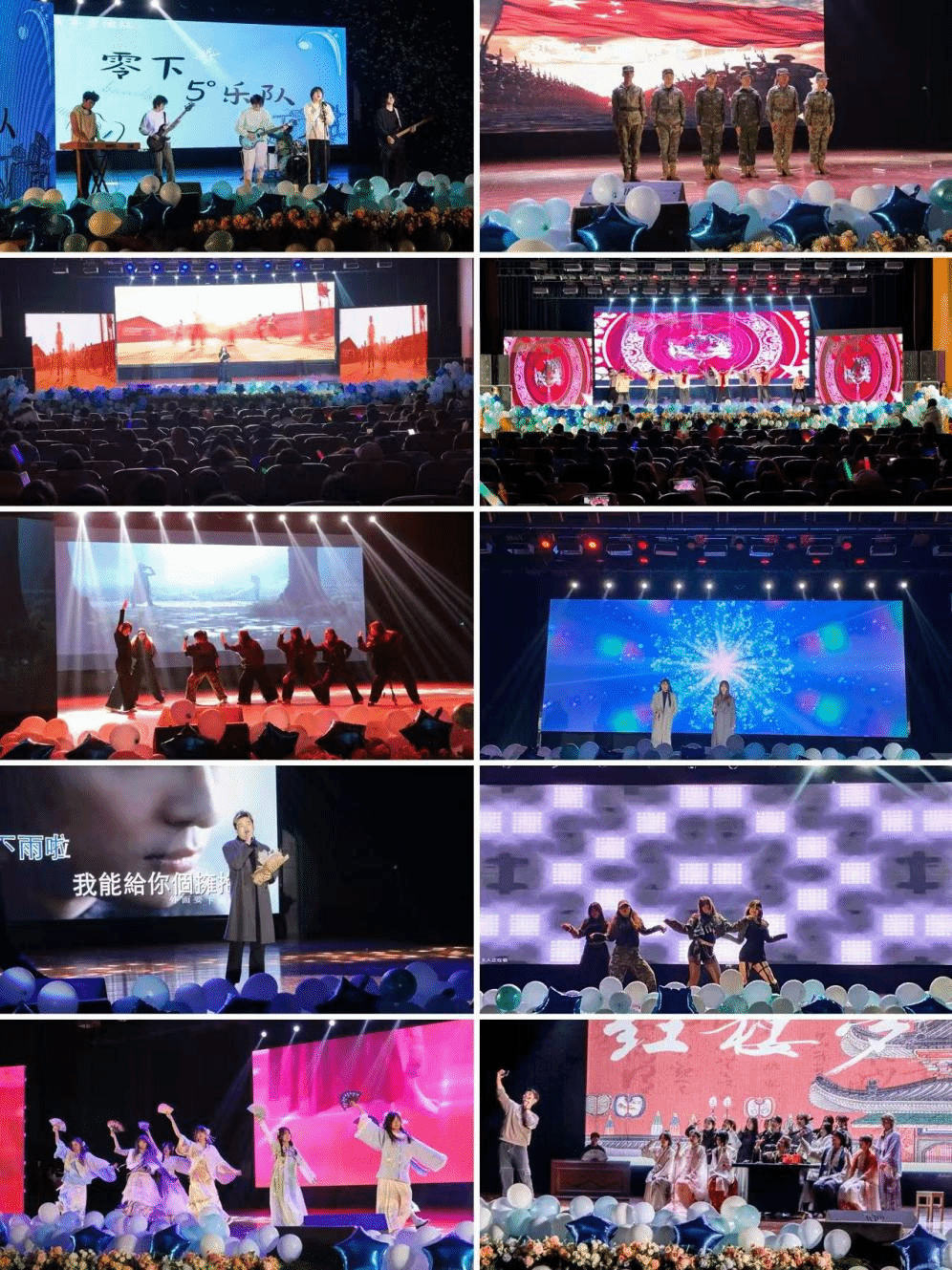 本次晚会分为“梦想启航”“青春飞扬”“‘艺’展芳华”三个篇章,展现了多才多艺、开放包容的校园文化氛围。一支舞蹈演绎出真正的《侠》之风骨,将恢宏侠气与阴柔之美高度交融,彰显了中国深厚的传统文化;盐工卫士的军事技能表演《铁血尖兵》动作迅猛、刚劲有力,尽显退伍军人奋发向上的精神风貌;充满回忆与欢乐的《家有儿女》团体舞,传递着学院对新生的热烈欢迎和殷切期望;歌曲《如愿》曲旋律深情、歌词蕴意深刻,表达了对国家繁荣昌盛、人民幸福安康的美好祝愿;舞蹈《寄明月》的演员们身着精致的汉服,轻盈起舞,成为一抹令人瞩目的亮色;舞台剧《金陵十三钗》运用舞蹈艺术语言,展现出至真至深的家国情怀;舞蹈《青春律动》活力四射,让台下观众感受到满满元气;歌曲《绅士》《龙卷风》唱出了对于爱情的不同定义;舞蹈《Whiplash》带来别具一格的音乐触动,展现独特的舞蹈节奏和韵律;舞台剧《红楼梦》让古典文学的魅力穿越时空,焕发出时代气息和青春光彩;手势舞《国家》用最真挚的爱国情感为祖国母亲献上祝福的赞歌;“T台SHOW”是设计艺术学院的保留节目,《Modern show》汇集了设艺学子的设计创意,诠释着时尚与艺术的完美结合。