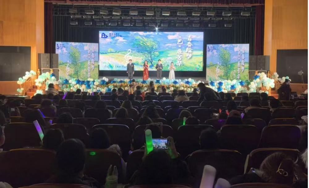 12月27日晚,设计艺术学院“青春绘梦 ‘艺’展芳华”迎新晚会在南校区行政楼报告厅隆重举行。江苏省“十佳”阅读推广人、盐城市残疾人阅读推广大使、盐城市亭湖大洋湾读书社创办人陈羌,设计艺术学院党总支副书记张庆领,学工办主任顾清,团委副书记戴心怡以及辅导员叶祯菲、韩晓晓、王硕出席本次晚会,与300余名24级新生共享视听盛宴。