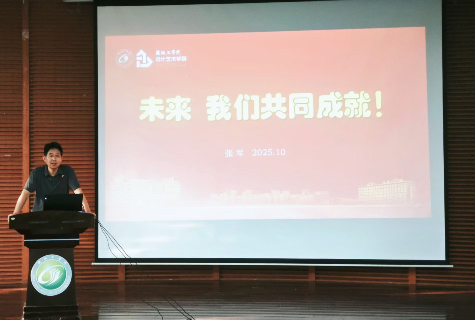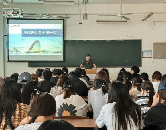 活动中,张军以《未来 我们共同成就》为题讲授“专业第一课”。他首先介绍学校及学院发展历程、办学目标、专业设置、课程体系、教学组织、师资力量与办学资源;随后从 “艺术何为”“设计为何”“学生何为” 阐释专业内涵,并寄语新生“大其心,容天下之物;虚其心,爱天下之善;潜其心,观天下之理;定其心,应天下之变”,以宽广心胸、谦虚态度、深沉思考与稳定心境理解世界、应对挑战。
