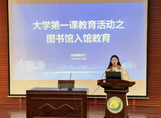 10月22日下午,学院在润美楼报告厅举办新生“大学第一课”之图书馆入馆教育活动,学院全体新生参加,新生辅导员韩晓晓主持,学校图书馆科技查新站严长虹主讲。