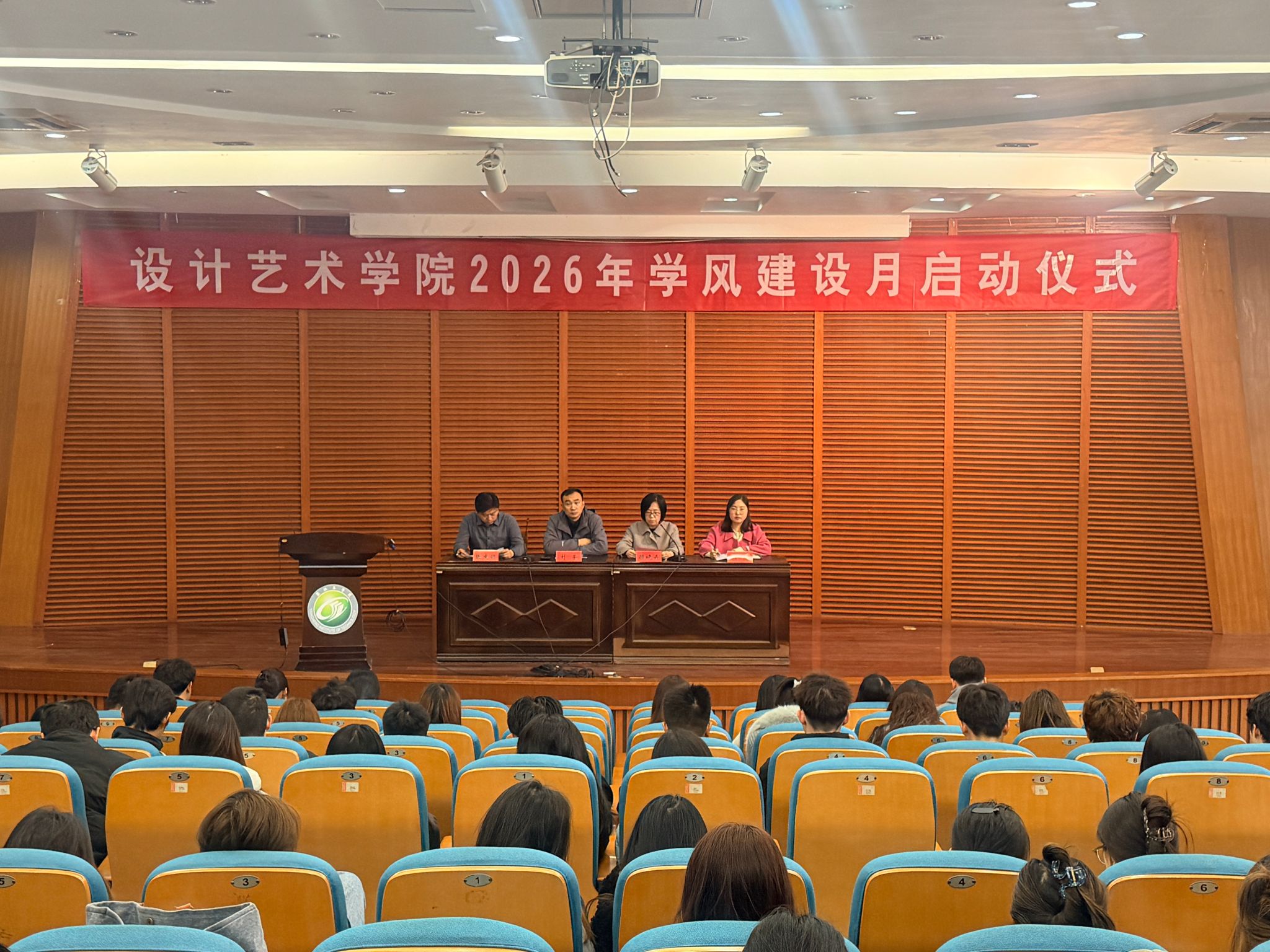 为深化学风建设,营造勤学善思、笃行创新的育人氛围,4月1日下午,设计艺术学院在润美楼报告厅隆重举行“扬帆学风,‘艺’路同行”学风建设月启动仪式。学院党总支书记刘荣、副院长顾晓卉、党总支副书记张庆领、学工办主任顾清及全体辅导员出席,大三全体学生参加仪式。启动仪式由顾清主持。