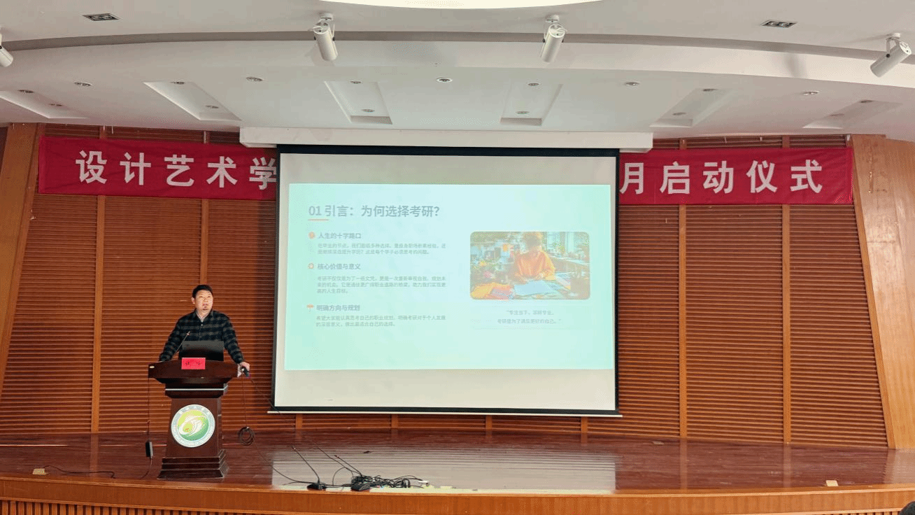 为帮助设艺学子明晰考研方向、做好科学备考规划,消除考研路上的信息壁垒,4月1日下午,我院在润美楼报告厅举办2023级学生考研动员讲座。学院产品设计系主任钱峰做考研动员辅导报告,2023级辅导员王硕、2023级全体本科生参加。