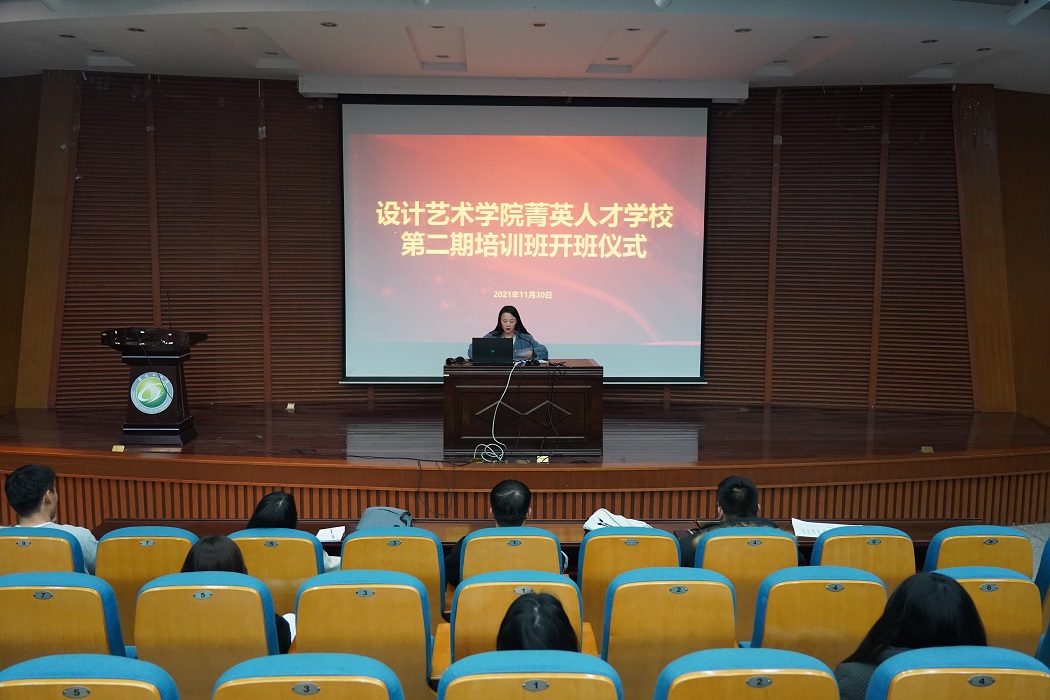 11月30日晚,在南校区润美楼报告厅,设计艺术学院举行菁英人才学校第二期培训班开班仪式暨首场报告会。学院分团委副书记叶禎菲主持,学院学生会、团委学生干部、新一届菁英人才学校学员等100余人参加。