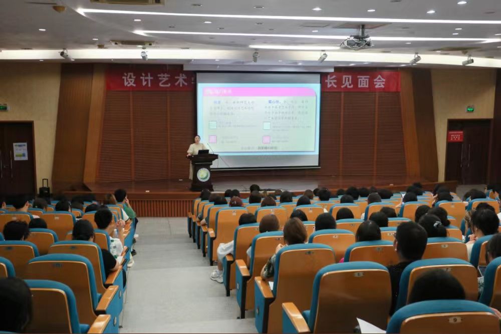 顾清详细介绍了设计艺术学院的历史沿革、师资力量、教学资源以及各专业方向的特色与优势,结合丰富的案例和生动的讲解,直观展示了学院的教学环境、师生风采以及取得的成果,让新生们对即将开始的大学生活充满了期待。