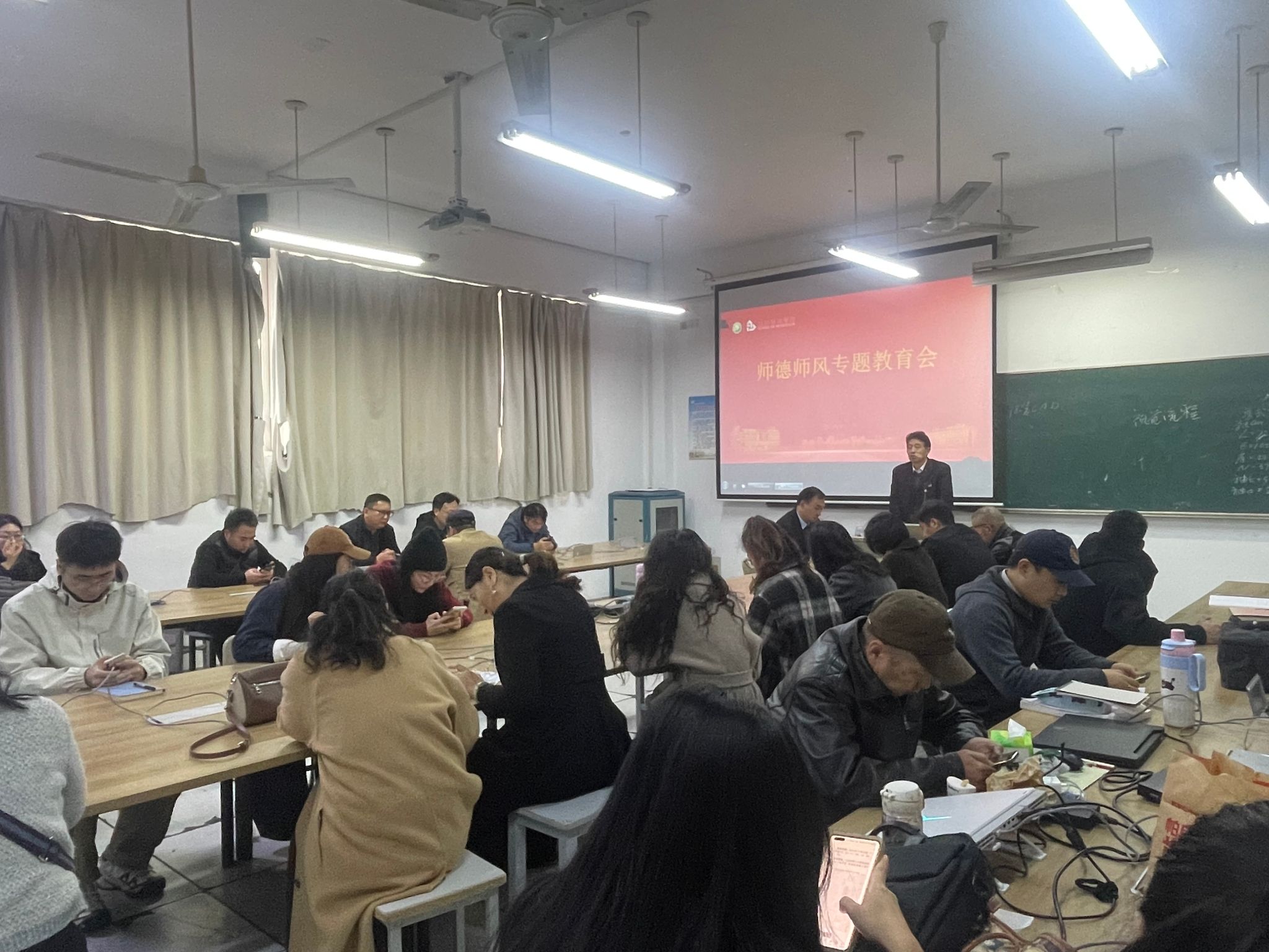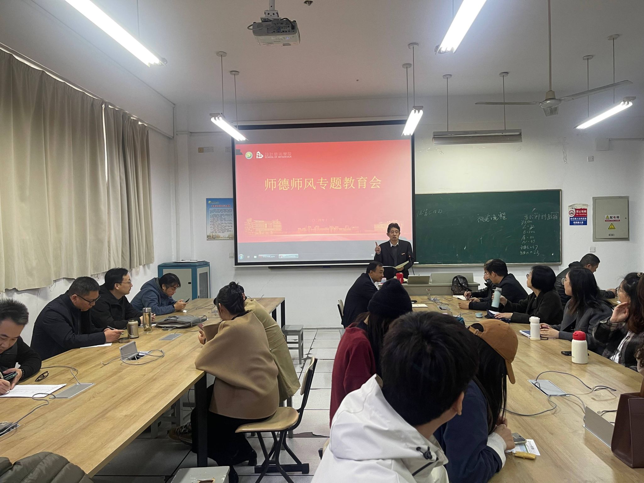 11月20日下午,在润美楼A209,学院召开师德师风专题教育会暨秋学期教职工第六次政治理论学习会。会议由院长张军主持,全体教职工参加。