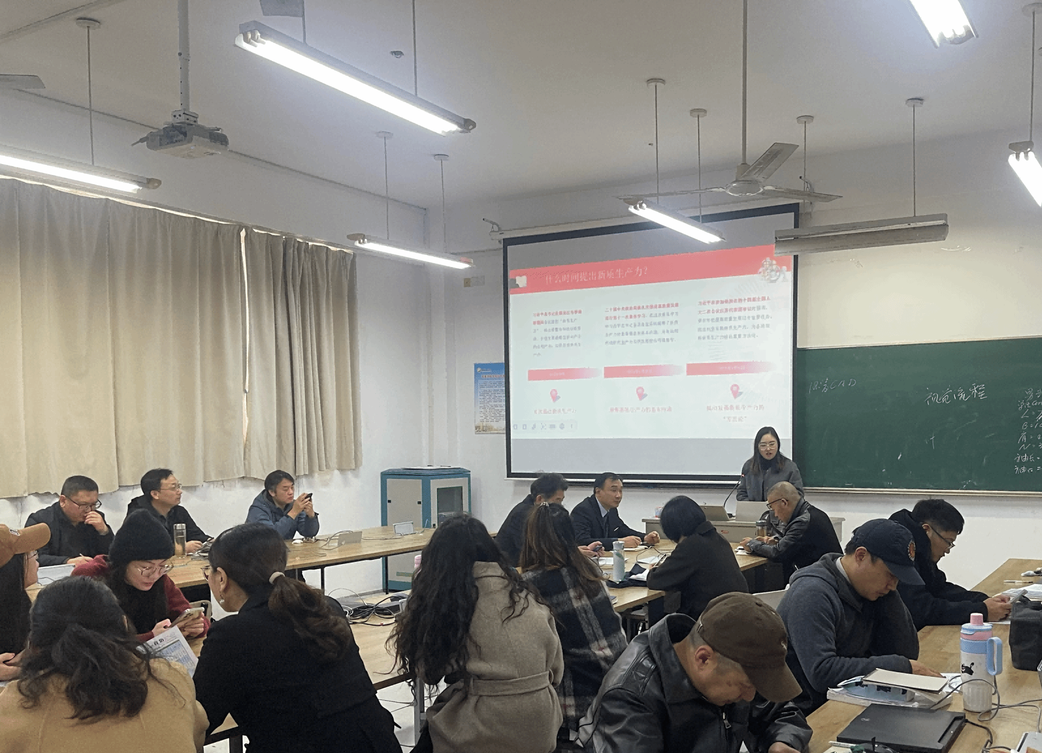 学生工作办公室主任顾清作题为“以新质生产力推动高质量发展走深走实”的领学发言。她指出,作为艺术类教师在教育教学中要为新质生产力赋能,通过更新教学内容,创新教学方法,注重培养学生创新和实践能力,让他们在实践中感受新质生产力的魅力,为经济社会发展储备人才。