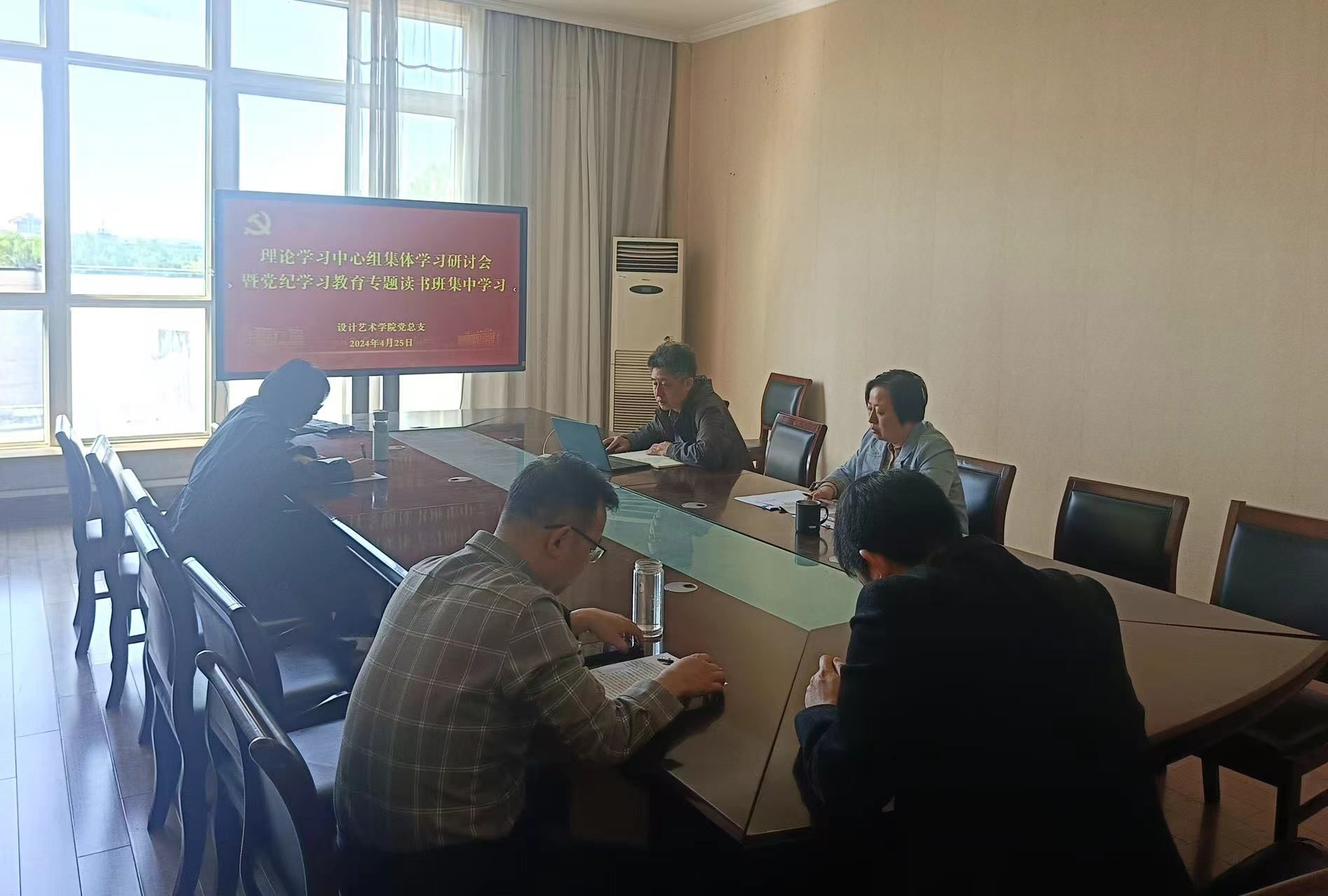 4月25日上午,设计艺术学院党总支理论学习中心组在润美楼A311东会议室举行集中学习研讨会暨党纪学习教育专题读书班集中学习,围绕《中国共产党纪律处分条例》《中国共产党第二十届中央纪律检查委员会第三次全体会议公报》《扎实推动教育强国建设》《干部教育培训工作条例》等内容进行专题学习研讨。学习会由学院党总支书记胡凌霞主持,党总支理论学习中心组成员参加。