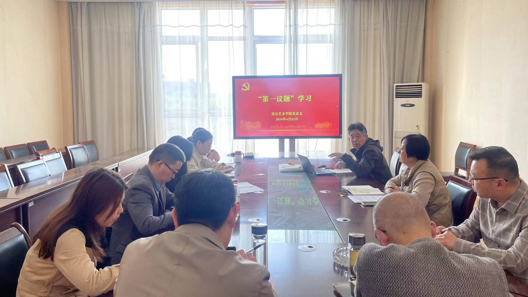 2024年4月22日上午,在南校区润美楼A311东会议室,设计艺术学院党总支以“第一议题”形式,开展党纪学习教育,深入学习习近平总书记关于开展党纪学习教育重要讲话重要指示精神。学院党总支书记胡凌霞主持,学院领导班子成员、各科室负责人、专业系负责人参加学习。
