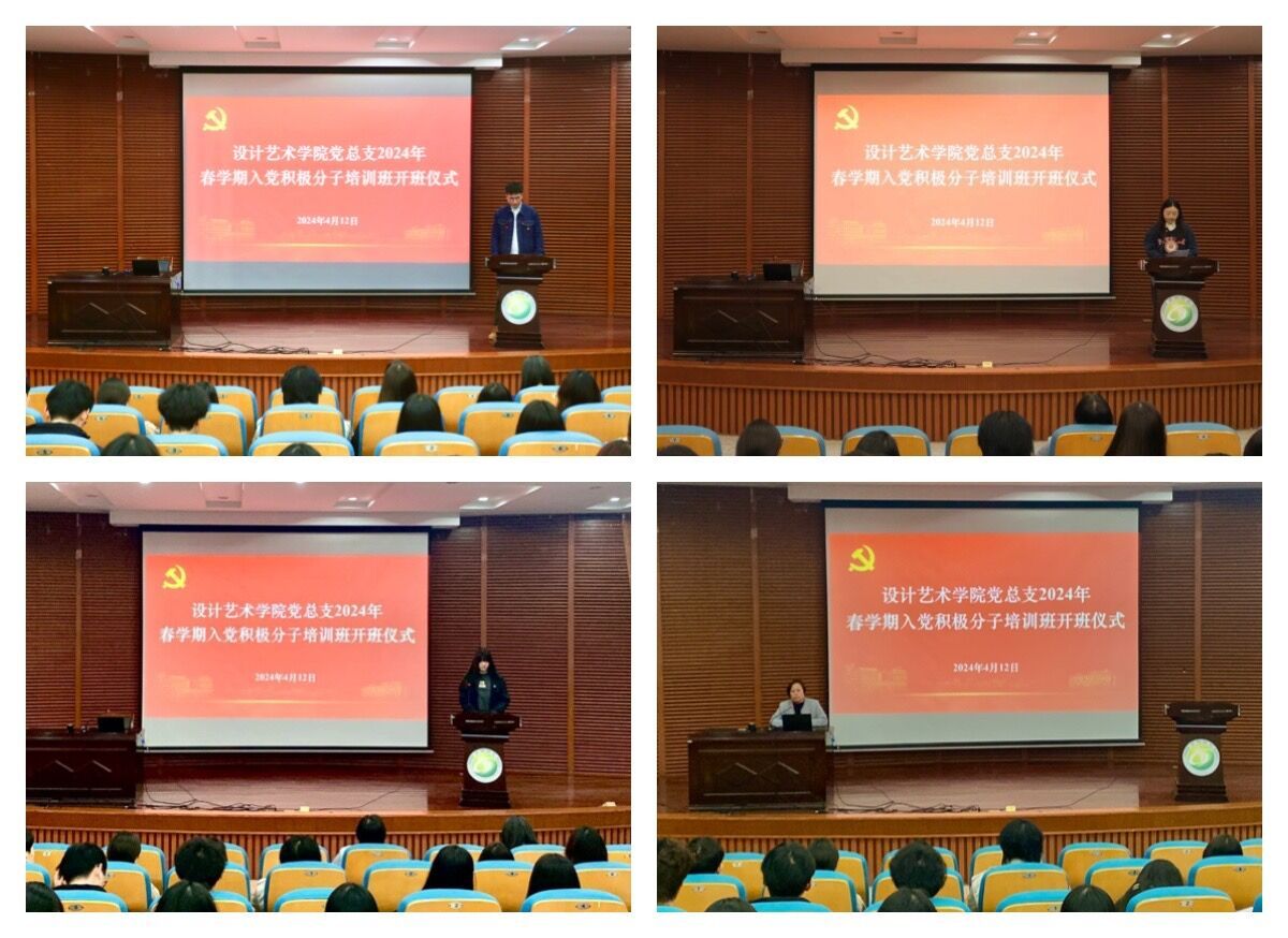 仪式上,戴心怡宣读了《设计艺术学院2024年春学期入党积极分子暨青马工程培训班培训安排》,强调了学习纪律、考核要求等相关规定。B视传232班许曦文作为入党积极分子培训班学员代表发言,她号召全体学员端正学习态度,以党员的高标准严格要求自己,提升综合能力,增强为人民服务本领,积极向党组织靠拢,争取早日加入中国共产党。