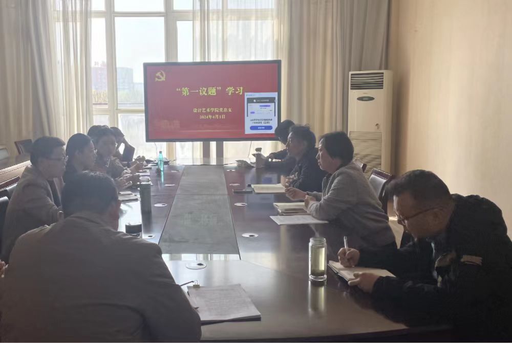 2024年4月1日上午,在南校区润美楼A311东会议室,设计艺术学院党总支以“第一议题”形式,深入学习习近平总书记在湖南考察时的重要讲话精神。学院党总支书记胡凌霞主持,学院领导班子成员、各科室负责人、专业系负责人参加学习。