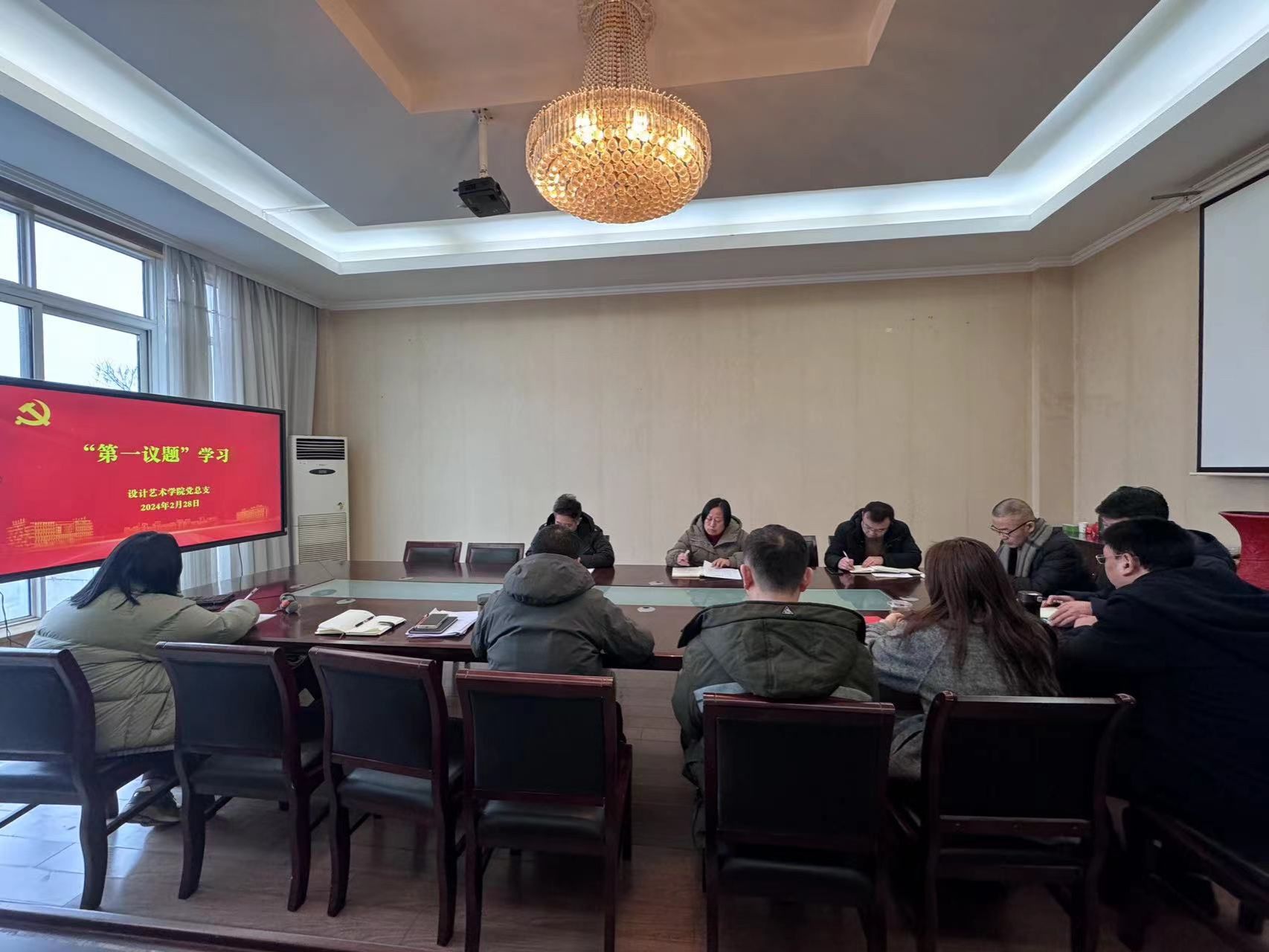 2024年2月28日下午,在南校区润美楼A311东会议室,设计艺术学院党总支以“第一议题”形式深入学习习近平总书记在2024年春节团拜会上和中央全面深化改革委员会第四次会议上的重要讲话精神。学院党总支书记胡凌霞主持,学院领导班子成员、各科室负责人、专业系负责人参加学习。