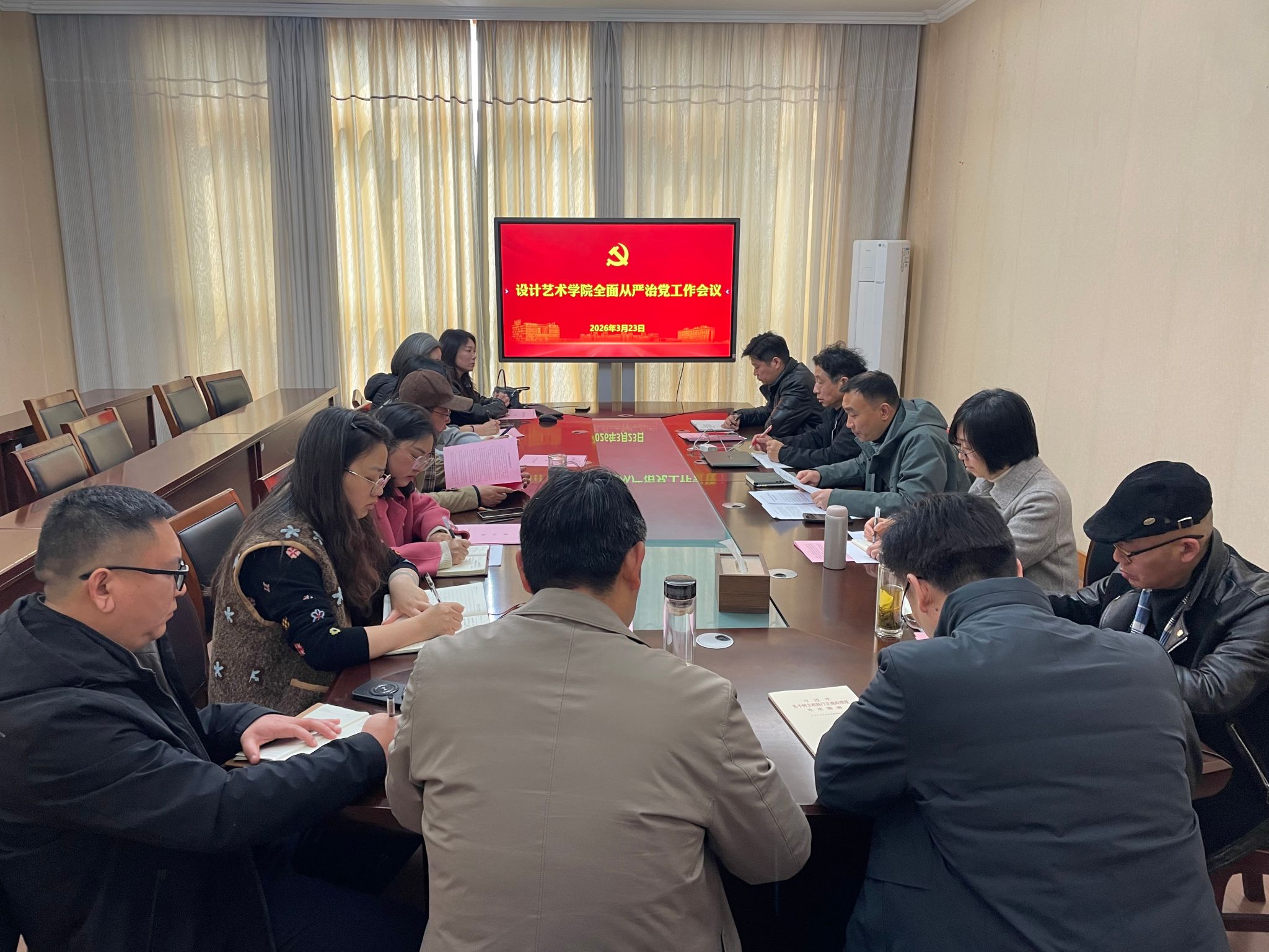 3月23日上午,在润美楼A311会议室,学院召开2026年全面从严治党工作会议。会议由院党总支书记刘荣主持,学院领导班子成员、各科室及内设机构负责人参加会议。