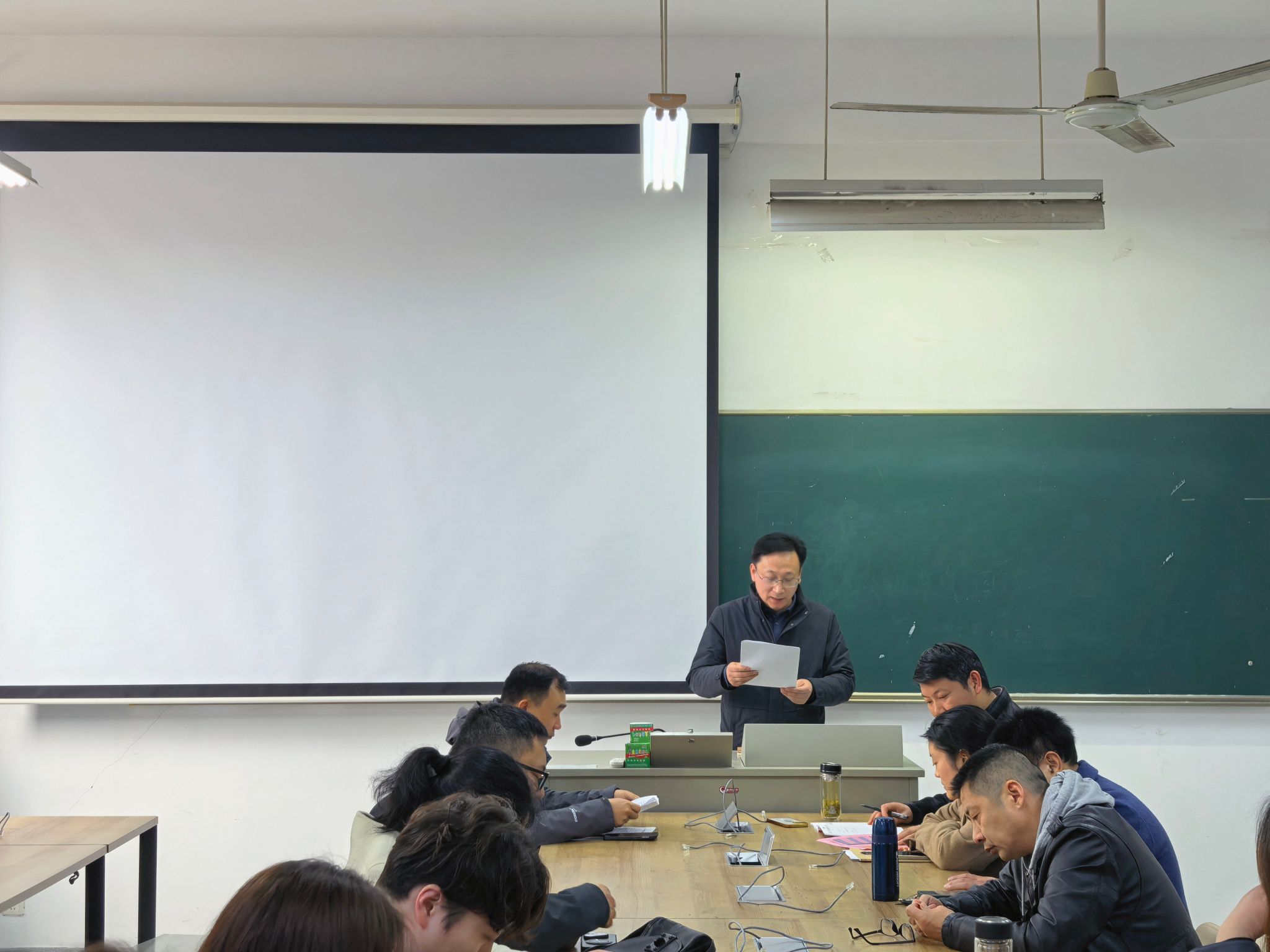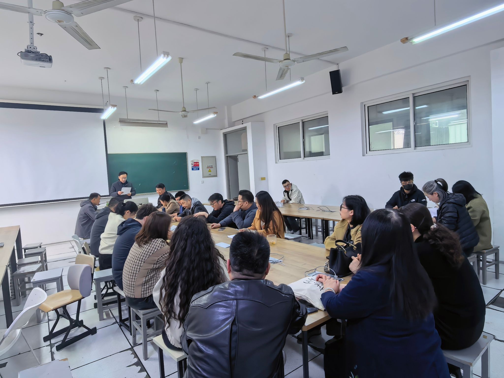 4月1日下午,教工党支部在润美楼A209开展政治理论学习,专题学习2026年全国、全省两会精神。会议由教工党支部书记朱金华主持,全体教师党员参加学习。