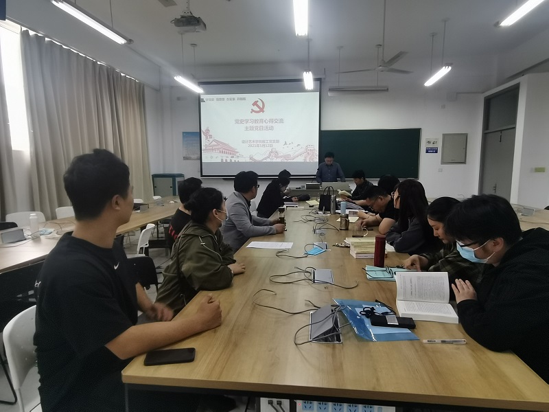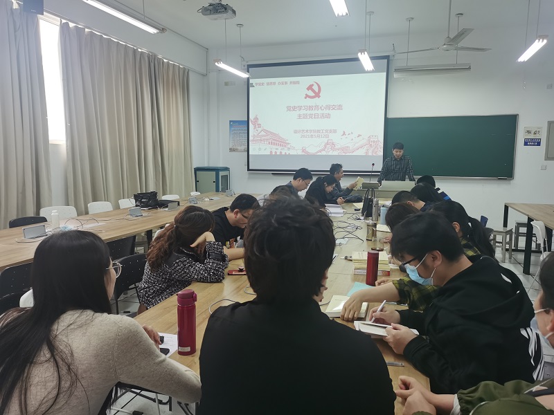 5月12日下午,在润美楼A209,设计艺术学院教工党支部组织开展党史学习教育心得交流主题党日活动,支部书记王莉主持,教工支部全体党员参加活动。