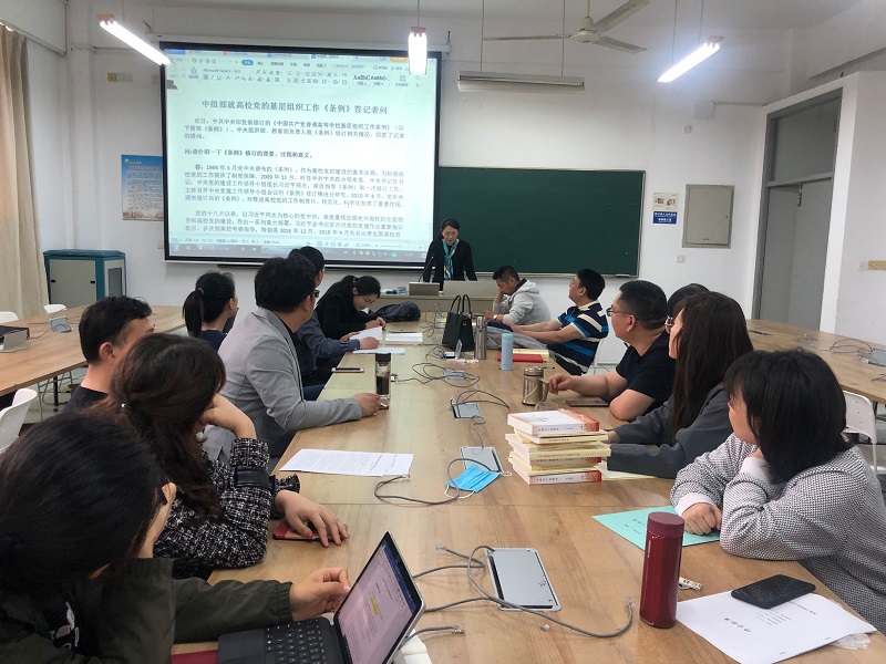 会上,按照学校开展“510”思廉月活动的要求,王莉带领全体党员学习了最新修订的《中国共产党普通高等学校基层组织工作条例》,要求所有党员要切实提高纪律规矩意识,筑牢廉洁从教思想防线,建设优良师德师风。