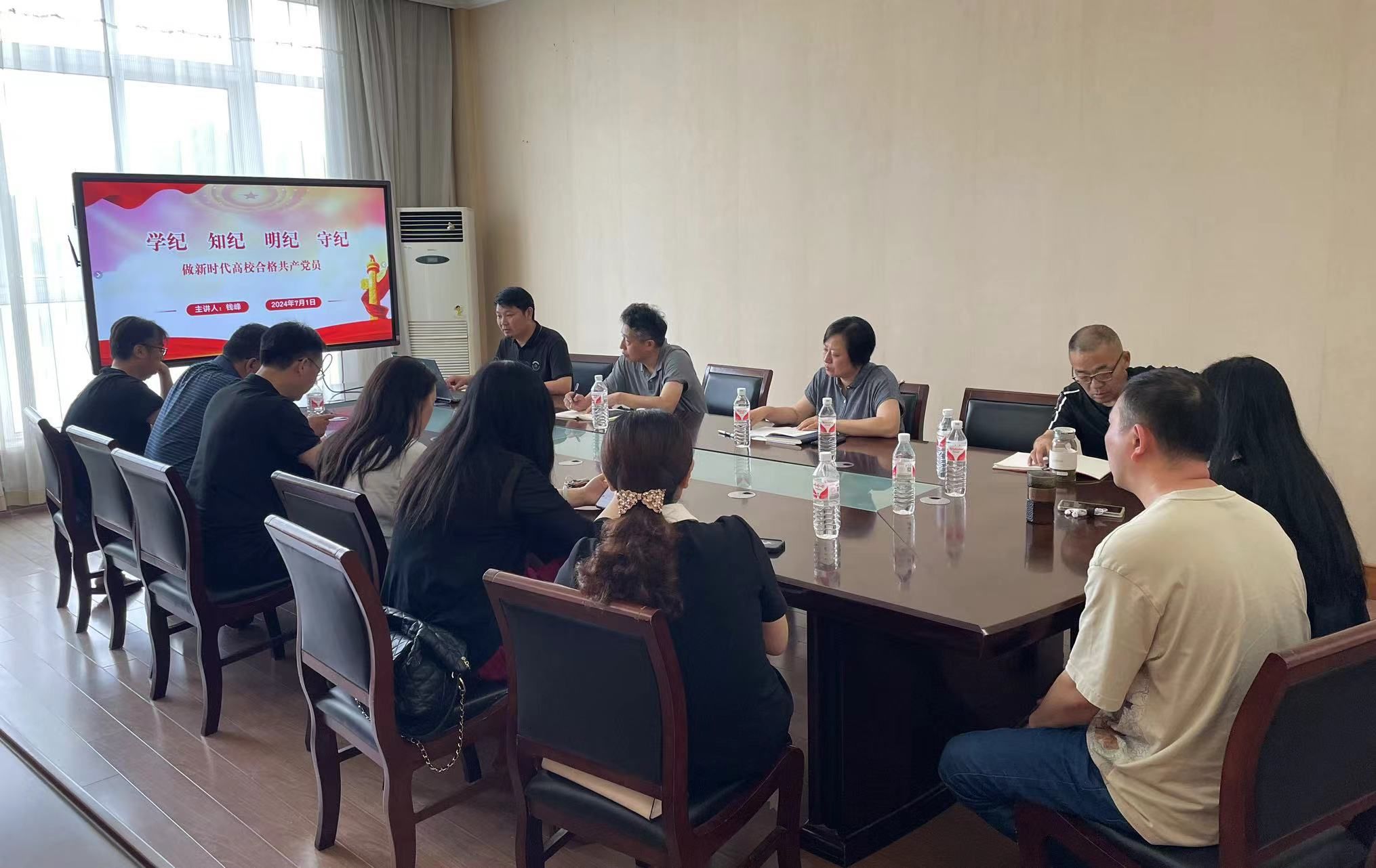 为进一步推动党纪学习教育走深走实,强化教工党员的纪律观念和规矩意识,2024年7月1日下午,在润美楼A311东会议室,设计艺术学院教工党支部开展党纪学习教育集中学习,教工党支部书记钱峰以“学纪 知纪 明纪 守纪,做新时代高校合格共产党员”为题讲授专题党课,教工党支部党员教师参加学习。