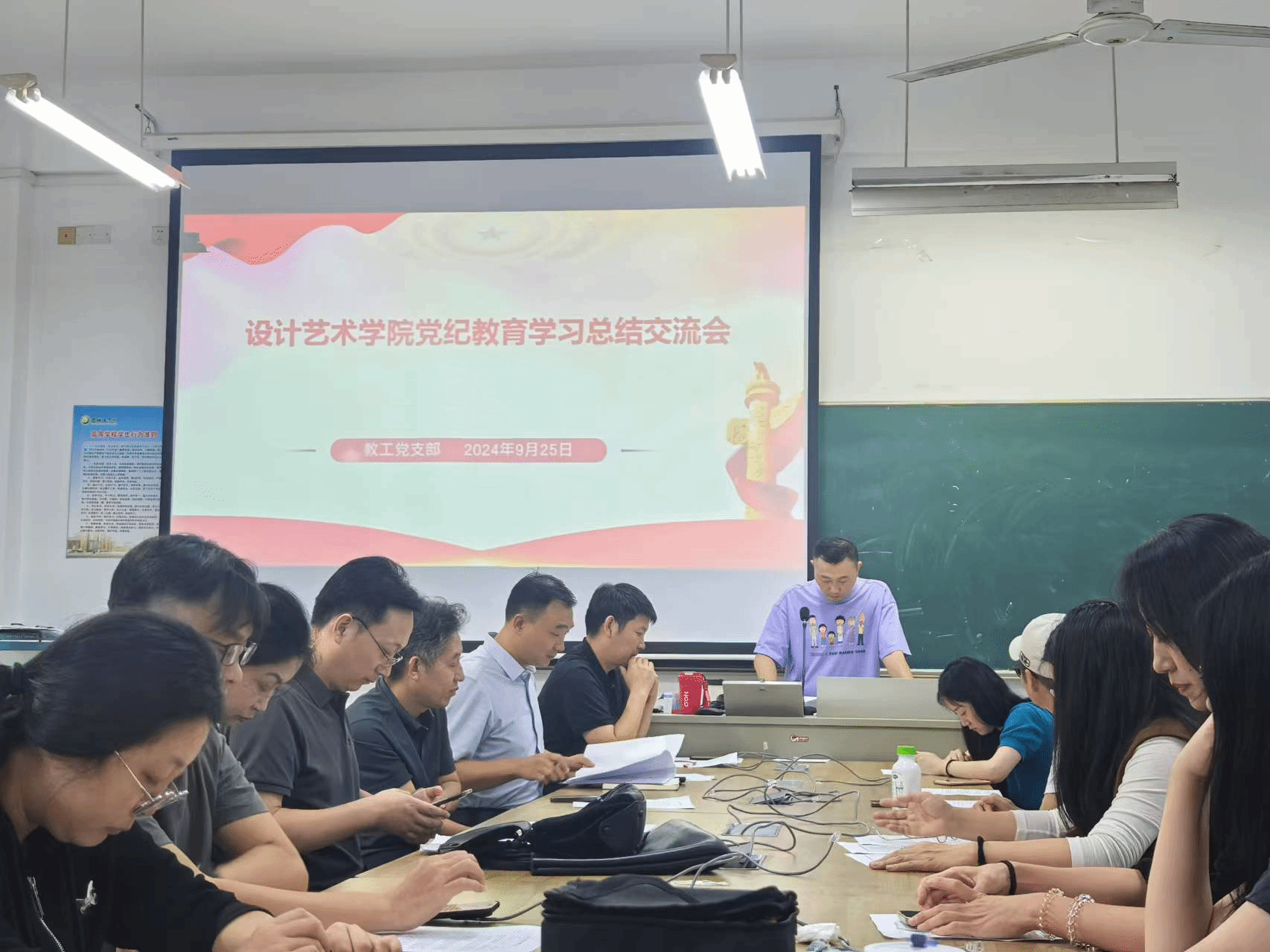 9月25日下午,设计艺术学院教工党支部在润美楼A211召开党纪教育学习总结交流会。会议由教工支部书记钱峰主持,支部全体党员参加。