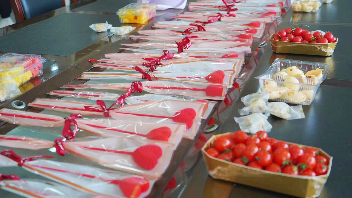 此外,学院服装系主任、分工会女工委员周科老师结合《针织服装设计》课程,指导20级服装系全体同学在活动前一周便开始为女老师们手工钩织毛线爱心花束。同学们从绕线、起针、钩织、塞棉、缝合一步步学起,最终共完成近50个爱心花束,并在活动现场赠送给女老师们,送上一份节日的惊喜。