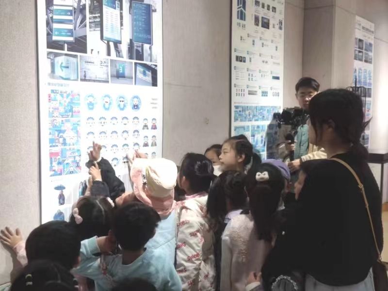 5月1日上午,科普基地联合当地小学、幼儿园,依托展览开展科普教育活动。地方小学和幼儿园的老师、学生,学校社科处、科普基地相关人员,学生志愿者等近40人参加活动。基地讲解老师结合孩子们的兴趣点,介绍各个作品的设计理念和创意亮点,让孩子们在参观和互动的过程中了解到家乡特色文化,领略白色海盐文化的内涵。