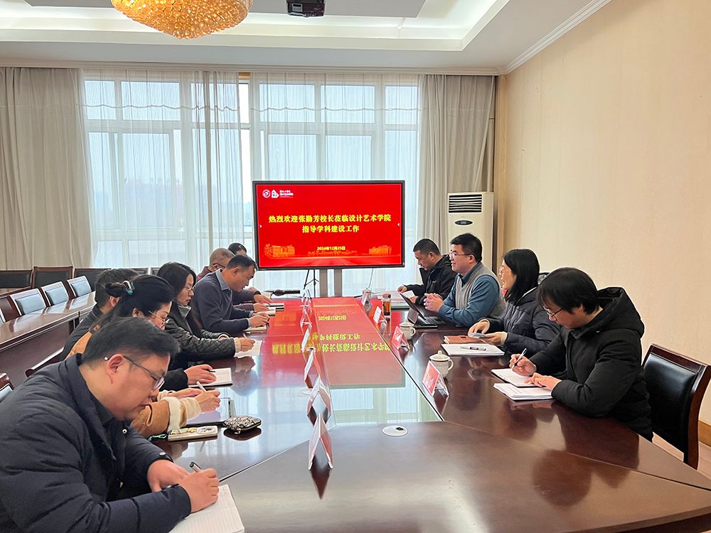 张勤芳在听取学院相关工作汇报后,高度肯定了设计艺术学院在学科建设和研究生教育方面所取得的成绩,并就研究生优质教学资源建设、研究生教学成果奖申报、硕士生导师队伍建设等方面工作提出了具体要求。他强调,设计艺术学院要进一步了解国家政策,结合地方产业需求,围绕学校发展定位,优化设计学科专业设置,不断健全学科交叉研究生培养机制;要大力引进高端人才,积极聘用校外或工科学院教师做学院硕导,为将来申报交叉学科学位点做准备;要做好“大思政”背景下研究生教育特色凝练,为教学成果奖申报积累素材;要制定相关激励措施,鼓励自编教材或教案。