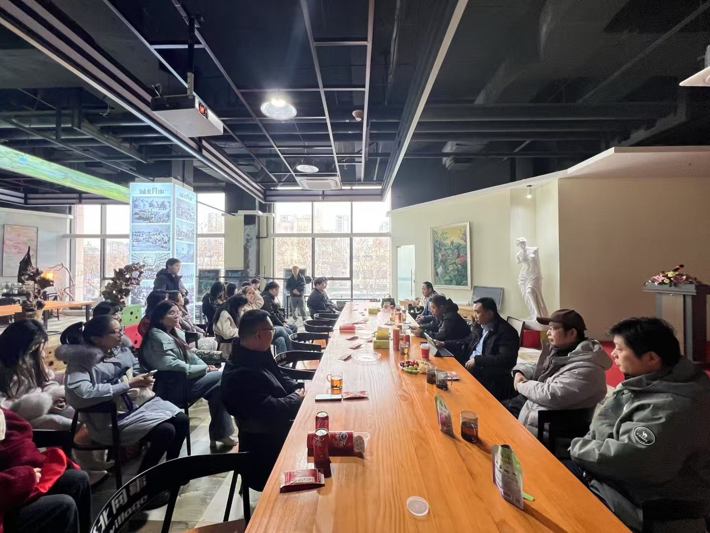 1月9日上午,设计艺术学院在盐城市新纪元商业广场“城北网事”艺术街区举办研究生师生座谈会暨“义写春联”进社区活动。院长张军、院党总支书记刘荣、副院长王文广、党总支副书记张庆领出席,专兼职硕士生导师,社区工作人员,2023级、2024级研究生代表共50余人参加活动。