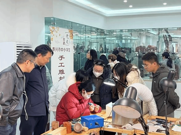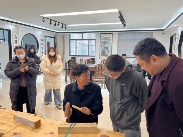 3月17日,2023级硕士研究生们在指导老师带领下前往位于泰兴市珊瑚镇的“印象珊瑚”木雕体验馆,这里不仅展示着国家级木刻大师的精美作品,更提供了难得的动手实践机会。在专业老师的悉心指导下,同学们怀着兴奋与期待,拿起刻刀,体味木刻创作的魅力。