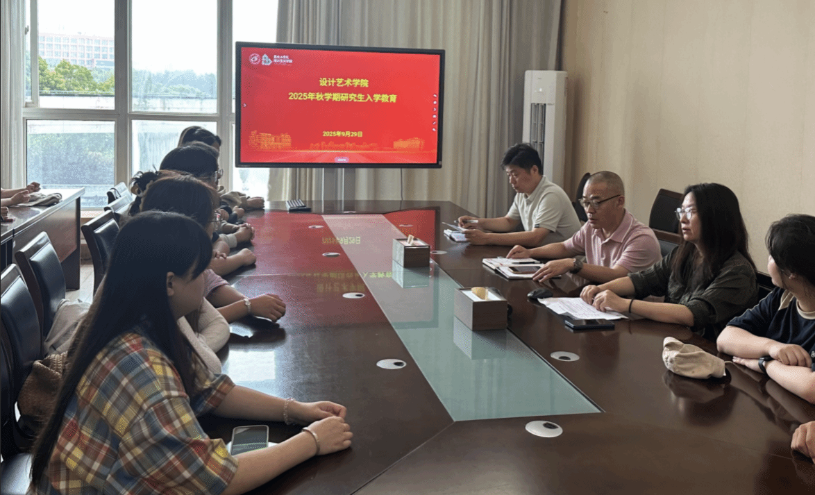 9月29日上午,设计艺术学院举办2025级秋学期研究生入学教育活动。副院长王文广主持,党总支副书记张庆领、实验中心主任戚凤国、学科秘书王燕及视觉传达设计专业教师季荣等参加。