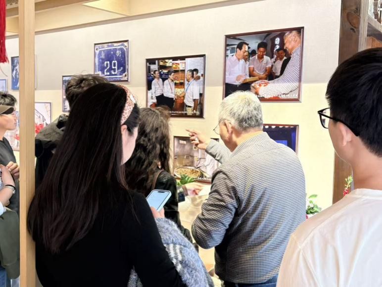 3月31日,2025级研究生率先前往竹林大饭店。这里作为城市文化“活态博物馆”,承载盐城市井记忆的重要窗口,成为开展民俗实践教学的优质载体。考察期间,在教师引导下,同学们重点与麦芽糖制作技艺传承人、铝艺传承人汪古君展开深度交流,认真聆听技艺传承历程,细致记录其文化内涵,主动请教传承过程中的坚守与难点,并结合课程所学,与艺人共同探讨非遗活化的有效路径,切实将课堂理论知识转化为实践认知,有效提升了自身的实践研究能力。