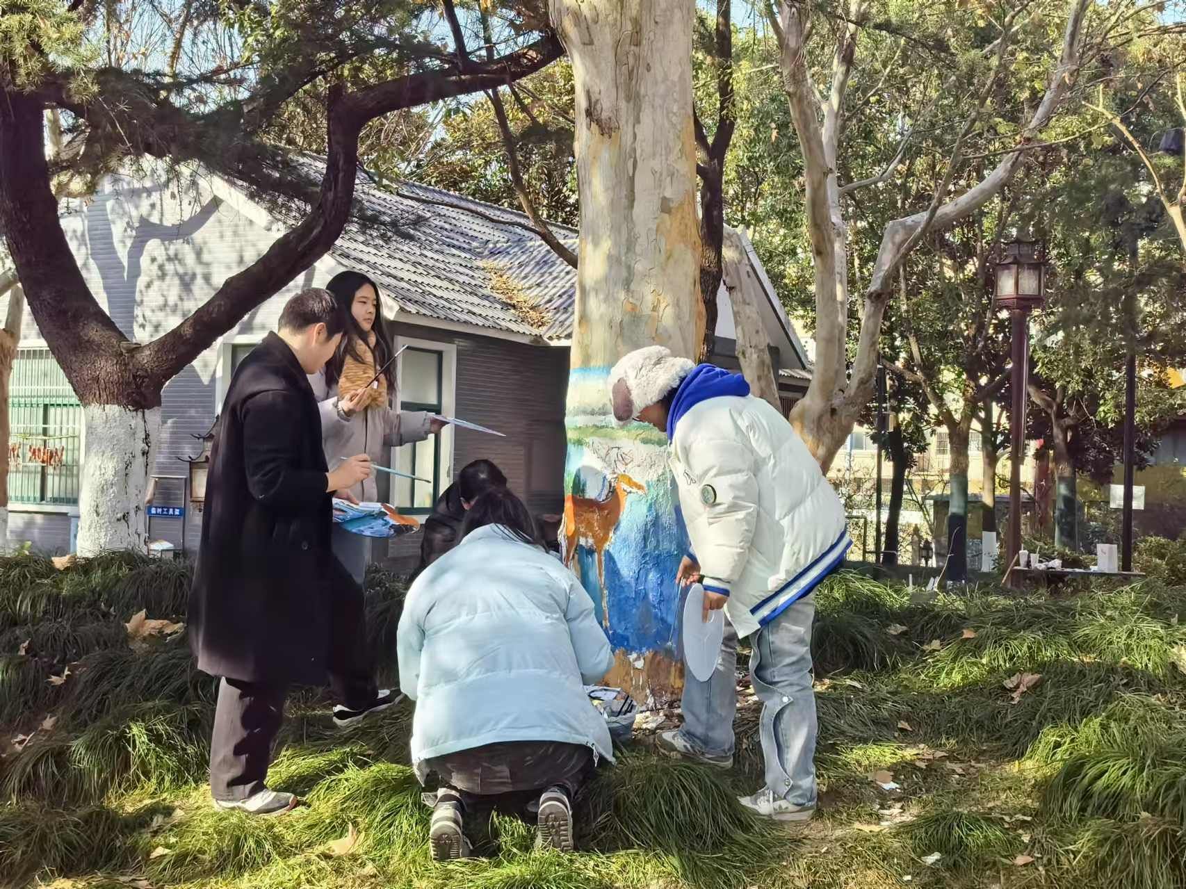 12月29日,设计艺术学院与市园林绿化管理处在迎宾公园联合开展“公园+新时代文明实践”活动。设计艺术学院的师生们以树体修复与美化设计为主题,通过彩绘对公园内的部分树木进行了艺术设计和美化,为迎宾公园增添了新的生机与活力。