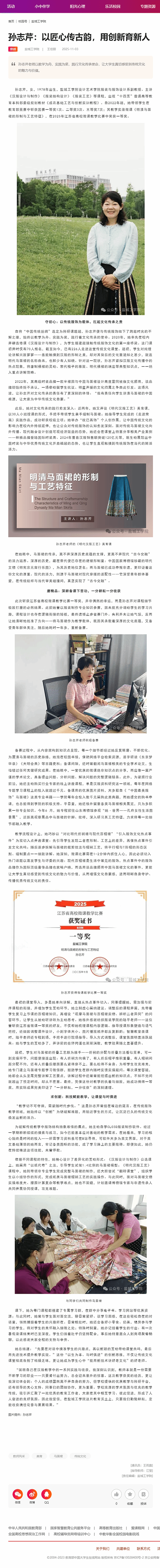 “回顾自己在汉服教学中的一系列实践与收获,我深刻认识到,教师本就是一份需要不断学习的职业——只要肯付出努力,总会迎来意外的惊喜。这次教学获奖的经历,更让我深切体会到:个人的成绩固然离不开自身的努力,但学校提供的优质教学与科研平台,还有领导的关心支持、同事们的团结协作,更为重要。学校浓厚的学术氛围与优良的教学传统,吸引并汇聚了一批优秀的教育工作者,大家在其中相互学习、彼此促进,形成了人人奋进的良好氛围。因此我坚信,在盐城工学院这片教育沃土上,只要我们勤勉耕耘,定能收获满径花香与累累硕果。”