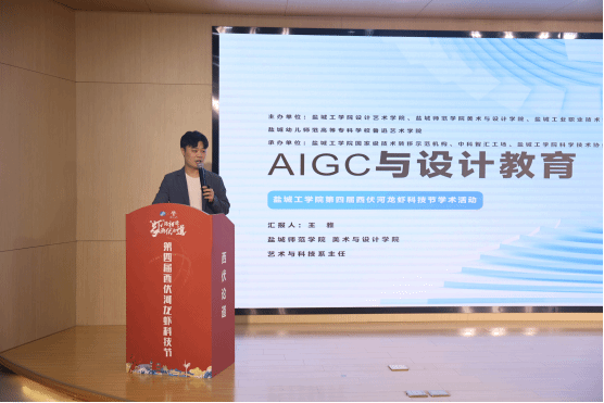 6月7日下午,设计艺术学院在西伏河产学研协同创新中心成功举办第四届西伏河龙虾科技节“AIGC与设计教育”专场活动。盐城师范学院美术与设计学院、盐城工业职业技术学院艺术设计学院、盐城幼儿师范高等专科学校鲁迅艺术学院、“摩度空间”相关领导和专家、教师应邀出席,设计艺术学院院长张军、副院长王文广、学院各研究所成员代表、专业系教师代表、研究生等50余人参加。