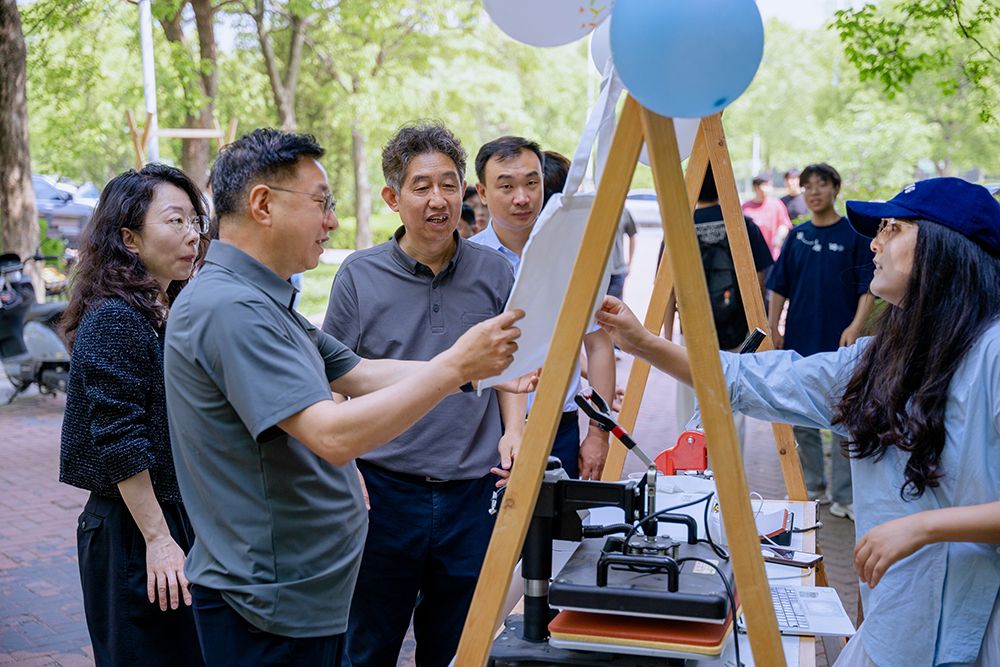5月19日上午,由我校设计艺术学院、国家级众创空间“摩度空间”、盐城市文化馆联合举办的“未来·进行时”创意市集在润美楼西侧道路旁开市。校党委副书记薛浩深入市集实地调研,设计艺术学院院长张军、党总支书记刘荣陪同调研。