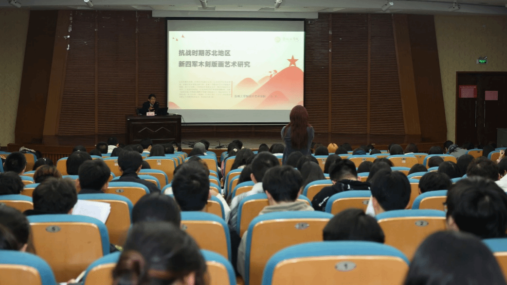 11月20日晚,江苏省教学名师、设计艺术学院院长张军教授在希望大道校区润美楼报告厅作题为《抗战时期苏北新四军木刻版画艺术研究》的美育专题讲座,吸引来自全校各学院的400余名师生到场聆听。