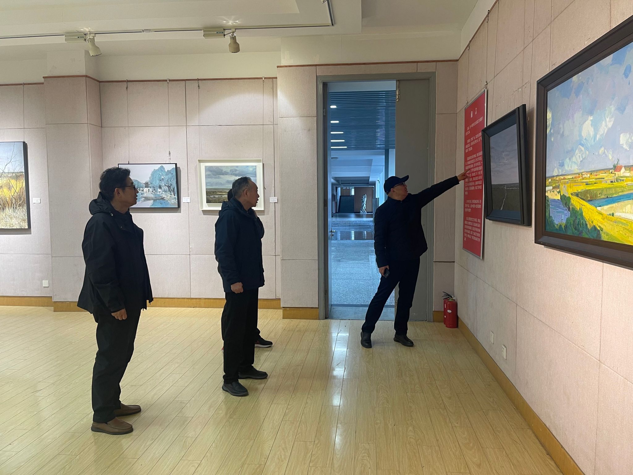 罗时荣一行参观了在我校润美楼第一展厅举办的师生艺术作品展与湿地油画写生展,并与部分作品的作者和指导老师进行交流。罗时荣指出,盐城工学院师生艺术作品展不仅是学校艺术教育成果的一次集中展示,更是盐城市文化艺术领域的一次重要呈现,为盐城市的市域文化注入了新的活力。他强调,今后将继续推动校地间的艺术交流,形成“资源共享、优势互补、共谋发展、互利共赢”的合作模式,为培养更多艺术人才、繁荣地方文化贡献力量。