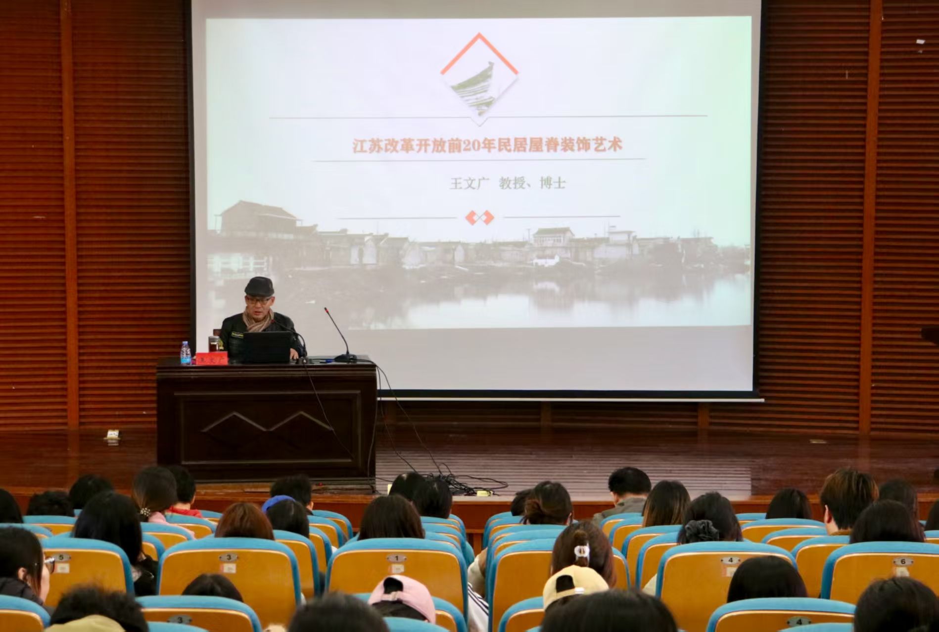 11月10日下午,设计艺术学院“美育大讲堂”在润美楼报告厅举办。副院长王文广教授作题为《江苏民居改革开放20年屋脊装饰艺术》的美育专题讲座。学院师生代表齐聚现场,共同探寻传统建筑中的美学密码与文化基因。讲座由设计艺术学院学术助理朱金华教授主持。