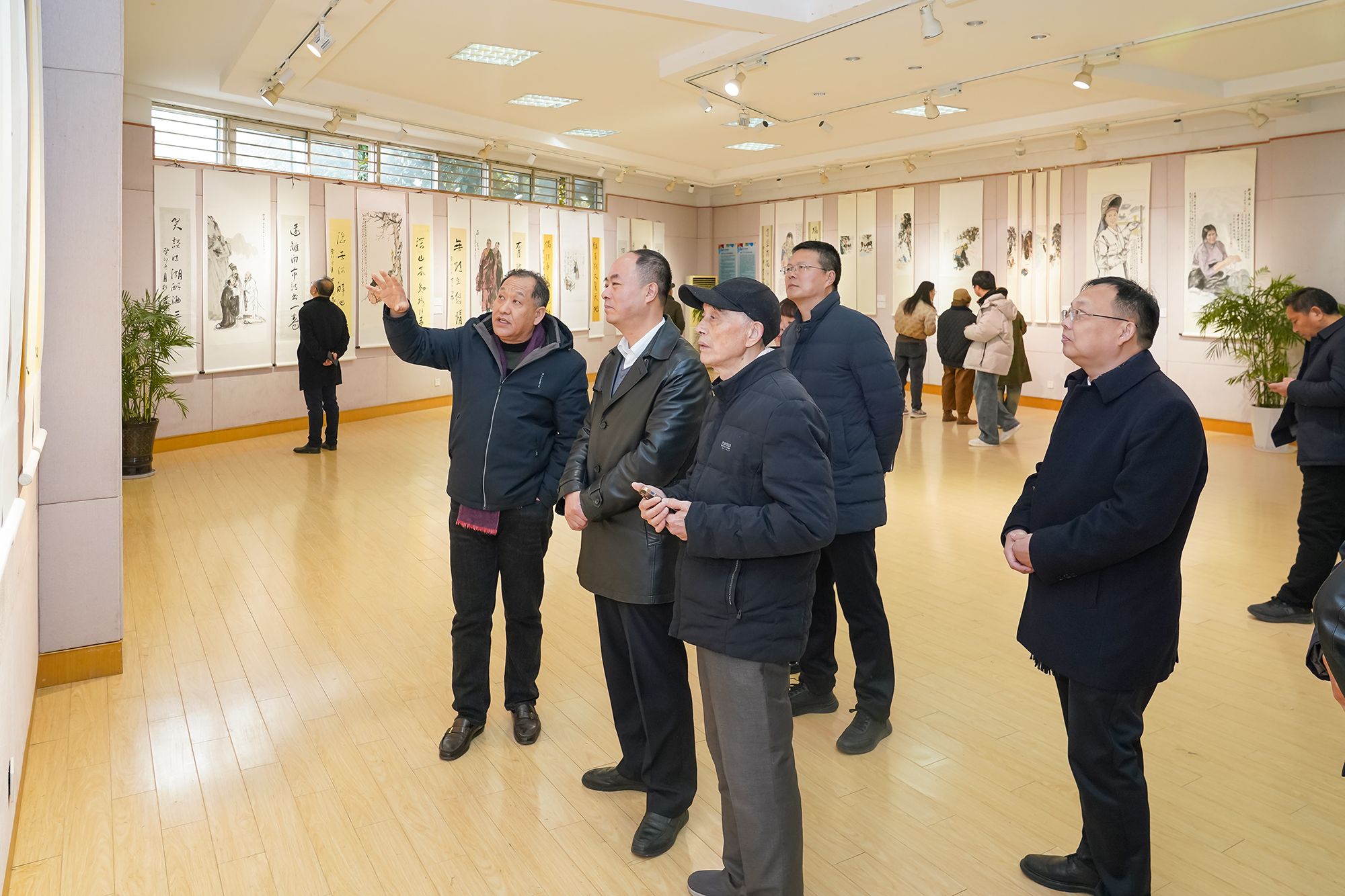 分享结束后,陈树青向我校捐赠精品书画作品,奚新国代表学校接受捐赠。开幕式结束后,与会人员共同步入展厅欣赏作品。